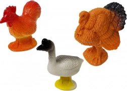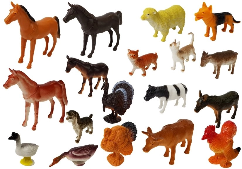 L’apparence et la coloration rappellent des équivalents réalistes. L’ensemble comprend environ 20 figurines et un tapis représentant le paysage d’une belle et grande ferme. Un vrai plaisir pour les amoureux de la nature. Sur le tapis figurent une jolie maison de campagne et de grands champs pour les animaux. Le set comprend au minimum des vaches, des chevaux, des moutons, des dindes, un chien, un chat, un coq, un dindon, une oie.