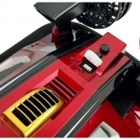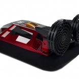 Un véhicule peut-il se déplacer sur l’eau sans hélices ou sans roues sur terre ? C’est possible grâce à deux grandes hélices qui propulsent l’air avec une telle force que l’aéroglisseur se soulève – un principe similaire à celui d’un moteur à réaction, à la différence que le gaz expulsé est de l’air. Grâce à sa surface glissante, il peut se mouvoir sur une surface lisse. L’aéroglisseur dirigé dispose d’une construction spéciale qui empêche la pénétration de l’eau. Le bouton de démarrage est placé sur le toit du bateau. Son apparence et sa forme profilée de vedette attirent l’attention. La vitesse de ce bateau rapide atteint jusqu’à 20 km/h. Il émet sur la fréquence 2,4 GHz. La radiocommande est confortable, tient parfaitement en main et permet le contrôle vers l’avant, l’arrière et latéralement.