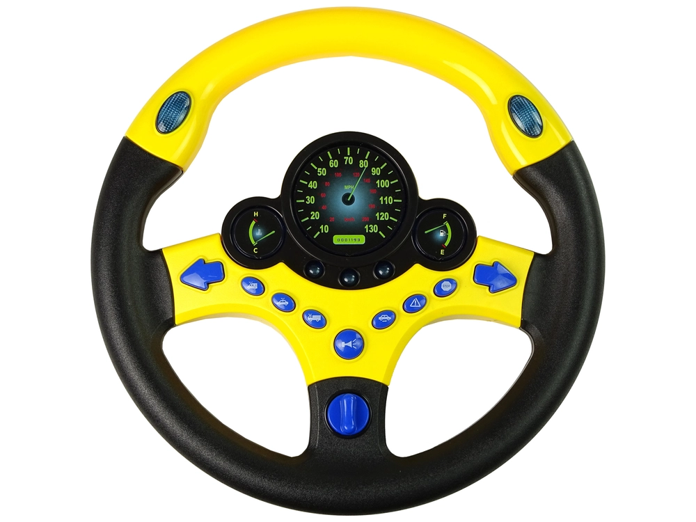 Le volant est de couleur jaune et noire. Il possède neuf boutons au total, dont deux clignotants, un klaxon et des signaux d’urgence. Il suffit de tourner la clé de démarrage pour commencer à jouer ! L’horloge sur le volant s’illumine en bleu. Grâce à son apparence et à ses LED, votre tout-petit aura l’impression d’être sur une véritable route au volant de sa voiture. Le volant tient parfaitement dans les petites mains. Il est temps pour votre enfant de simuler la conduite.