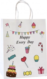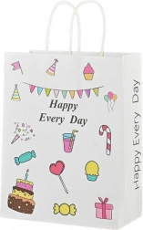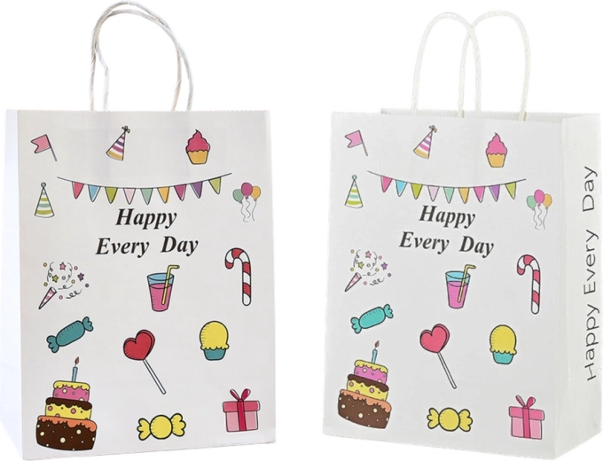 Ce sac en papier est décoré de graphismes colorés et de l’inscription « Happy Every Day », ce qui le rend adapté à un large éventail de célébrations, comme les anniversaires, les fêtes ou les réunions entre proches.