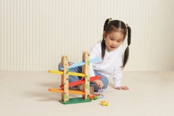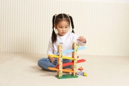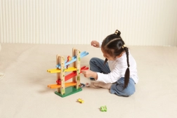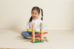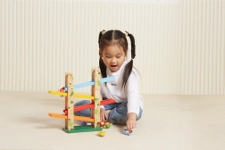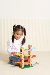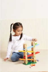 La piste de descente en bois encourage le jeu interactif et améliore la coordination des mouvements.