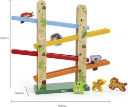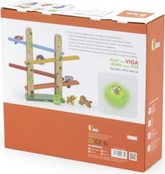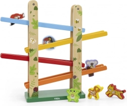 La piste de descente en bois pour animaux Jungle Slider de la marque VIGA est conçue pour divertir tout en éduquant les enfants. Grâce à sa fabrication de qualité et à ses éléments colorés, ce jouet offre des expériences de jeu captivantes. Les animaux peuvent dévaler les quatre niveaux de la rampe, ce qui développe la coordination et la motricité fine.