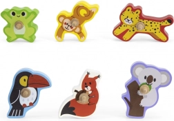 Le coffret comprend six figurines d’animaux en bois qui stimulent l’imagination et les compétences motrices.