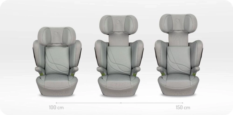 Appui-tête profond, moelleux et réglable en hauteur sur 9 niveaux, protège la tête et le cou, absorbe l’énergie d’un impact et grandit avec l’enfant.