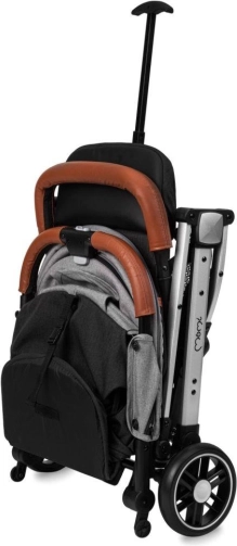 Se plie en un instant en un format compact avec position debout autonome. Grâce à la poignée télescopique, vous pouvez tirer la poussette pliée comme une valise.