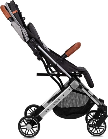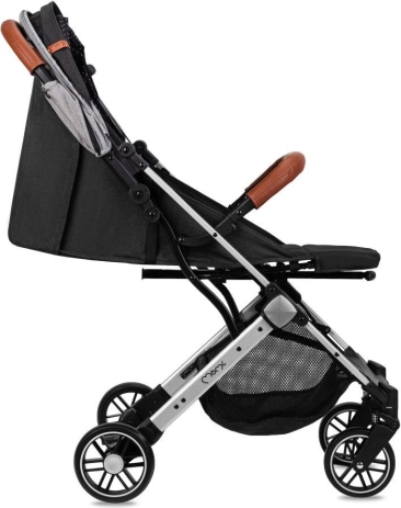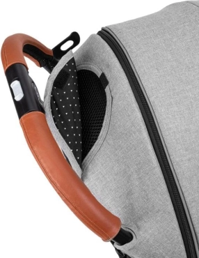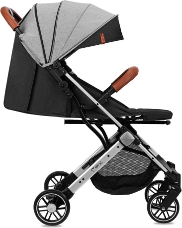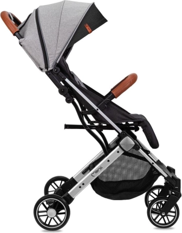 La poussette se plie facilement en un petit paquet qui tient debout tout seul. Une poignée télescopique pratique permet de tirer la poussette pliée comme une valise. Les roues EVA avec suspension sur les quatre roues garantissent une conduite souple même sur les irrégularités urbaines. La sécurité est renforcée par le harnais 5 points, l’arceau amovible et un frein au pied fiable.
