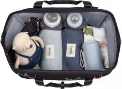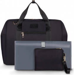 Grâce au port réglable et à la possibilité de fixation sur la poignée de la poussette, le sac est idéal en ville comme en voyage. L'ensemble comprend un matelas à langer pratique pour un change hygiénique et une trousse de toilette pour les cosmétiques ou petits objets.