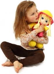 Adorable poupée en tissu avec de longues tresses et un petit chapeau fleuri, dotée d’un corps tout doux en matière délicate, idéale pour câliner, pour le lit et pour les voyages. Grâce à sa taille de 35 cm, elle tient parfaitement même dans les petites mains et est adaptée dès la naissance.