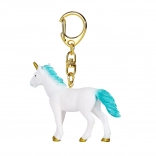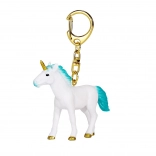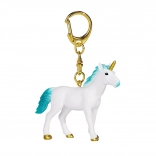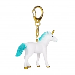 Une licorne blanche avec crinière turquoise et corne ainsi que sabots dorés apporte une touche unique à vos clés et sacs.