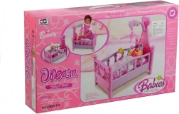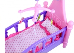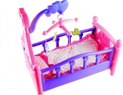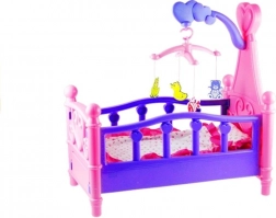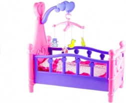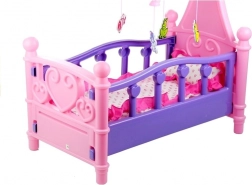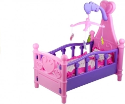 Adorable berceau pour poupées en rose‑violet avec un mobile rotatif et une couette et un oreiller moelleux ravira chaque petite maman. Structure en plastique sûre sans bords tranchants, montage facile et petits cœurs décoratifs font de ce berceau un bel accessoire pour la chambre d’enfant. Idéal pour jouer à soigner et à bercer les poupées.