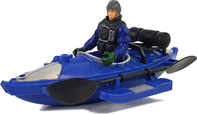 Un kayak détaillé avec équipement et figurine enrichit les scénarios de jeu avec des opérations de sauvetage sur l’eau et en terrain difficile d’accès.