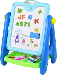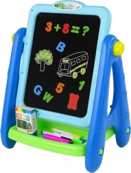 Découvrez l’exceptionnelle table éducative bleue 2 en 1, qui mise sur la diversité de l’apprentissage et le plaisir ! Ce tableau fonctionnel possède deux faces : l’une permet de dessiner avec des feutres de couleur ou d’épingler des cartes, l’autre est un tableau noir magnétique sur lequel vous pouvez écrire à la craie comme sur un tableau d’école.