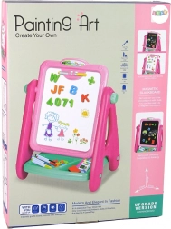 Les dimensions du tableau sont de 41 cm x 27 cm x 37 cm, et l’emballage fonctionnel mesure 48 cm x 35 cm x 8 cm. Ce tableau apporte non seulement la joie du jeu créatif, mais il soutient aussi le développement des compétences en écriture, dessin, calcul et apprentissage des lettres.