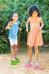 Les échasses développent la stabilité, l’assurance dans la démarche et la condition motrice globale de manière ludique – idéales pour les enfants au jardin comme en classe.