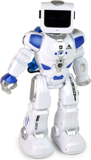La télécommande donne accès à un large éventail de modes : marche avant/arrière, conduite et rotation, rotation de la tête, 3 programmes de danse, programmation et patrouille automatique. Le robot parle en “langage robot” et réagit aux applaudissements – après une danse, il réclame des ovations et poursuit sa performance. La batterie Li‑ion 3,7 V intégrée avec recharge USB réduit les coûts d’utilisation et simplifie l’emploi.