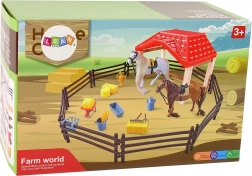 L'ensemble comprend des outils nécessaires à l'entretien quotidien de la ferme et de l'étable - tricycle, fourche, foin, mangeoires et plus.