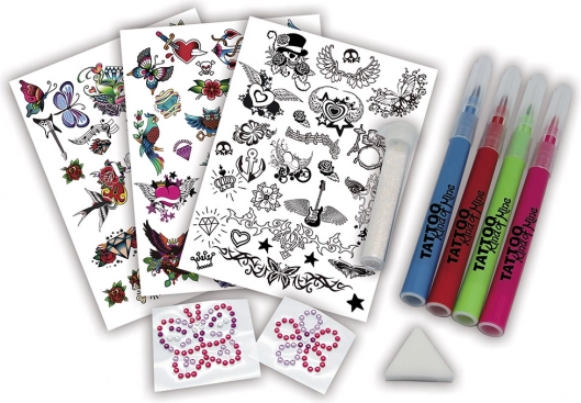 Créez vos propres tatouages originaux ou essayez de recréer des motifs préférés. Le kit est facile à utiliser et amusant pour chaque occasion.