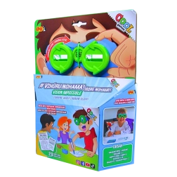 Dans l'emballage, vous trouverez des lunettes avec montures pivotantes, 29 cartes de tâches, un marqueur effaçable et le manuel du jeu. Convient aux enfants à partir de 8 ans.
