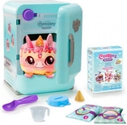 Transforme ta pâtisserie en jeu ! Le coffret COOKEEZ MAKERY petits gâteaux glacés – réfrigérateur te permet de mélanger les « ingrédients », de pétrir la pâte, de la mettre dans le moule, de la décorer avec du slime et une gaufrette, puis de tout glisser dans le « réfrigérateur » spécial. Règle la température à −10 °C, ferme la porte et, après 20 secondes, une surprise t’attend – une figurine peluche de petit gâteau parfumée, qui grelotte de froid et émet des sons amusants.