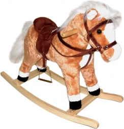 Adorable cheval à bascule marron de taille réduite, offrant aux enfants beaucoup de plaisir et de développement. Il propose des sons réalistes de hennissements et de galop, une queue mobile et est équipé de étriers et poignées en bois pour une balade plus sûre. En se balançant, les enfants entraînent leur motricité globale et leur équilibre. Dimensions 74 × 28 × 58 cm. Piles 3× AA non incluses.