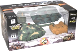 La bataille de chars propose deux chars RC, offrant des expériences de jeu authentiques grâce à des effets lumineux et sonores. Le jeu est conçu pour deux joueurs et permet des combats captivants où chaque joueur doit toucher le char de l'adversaire et lui retirer ses vies. Chaque char a une tourelle rotative et est capable de manœuvrer sur un terrain difficile.