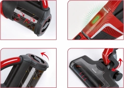 Grâce au fonctionnement à batterie, l'aspirateur est entièrement mobile et les enfants peuvent facilement contrôler ses fonctions, comme la tête d'aspiration et la buse amovible.