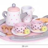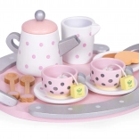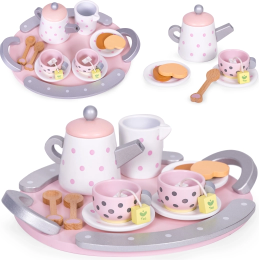 Grâce à ce set, l’enfant peut jouer le rôle d’un adulte et inviter à déguster un délicieux thé et une collation sucrée. En plus du plaisir, votre enfant développe son imagination, sa dextérité manuelle et apprend également à préparer le thé et à connaître les règles à table.