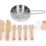 - 2 couteaux, set de couverts, 2 spatules, sel et poivre, casserole