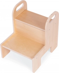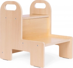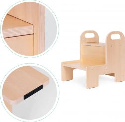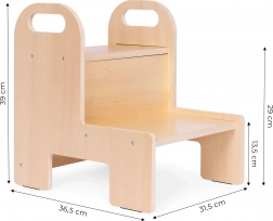 Le contreplaqué épais de 12 mm, les bords arrondis et deux marches spacieuses offrent aux enfants assurance et sécurité lors d’une utilisation quotidienne dans la cuisine et la salle de bain.
