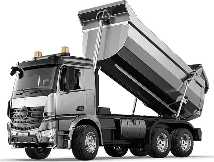 Benne RC réaliste Mercedes‑Benz AROCS à l’échelle 1:20, combinant benne métallique, finitions détaillées et contrôle à distance complet. Profitez des effets lumineux et sonores, de la levée et descente électriques de la benne par simple bouton, de pneus en caoutchouc pour une excellente traction et d’un appairage automatique 2,4 GHz. Idéal pour les petits et grands fans d’engins de chantier.