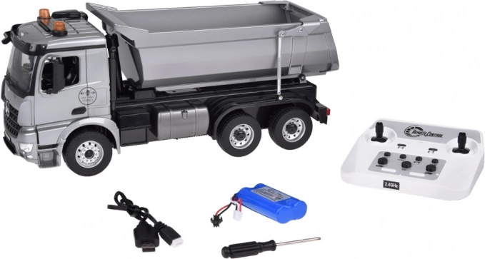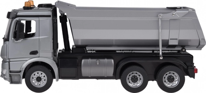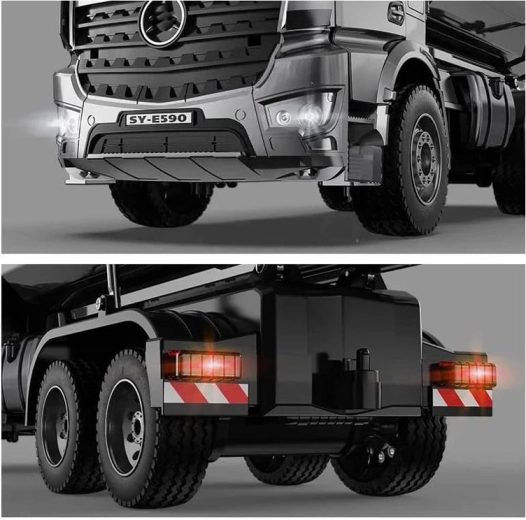 Cette benne RC détaillée Mercedes‑Benz AROCS offre une expérience ultra réaliste : calandre d’origine avec logo, cabine fidèlement reproduite avec portes ouvrantes et effets lumineux et sonores du moteur, des clignotants et de la marche arrière. La benne métallique et son mécanisme de levage apportent robustesse et authenticité au jeu.