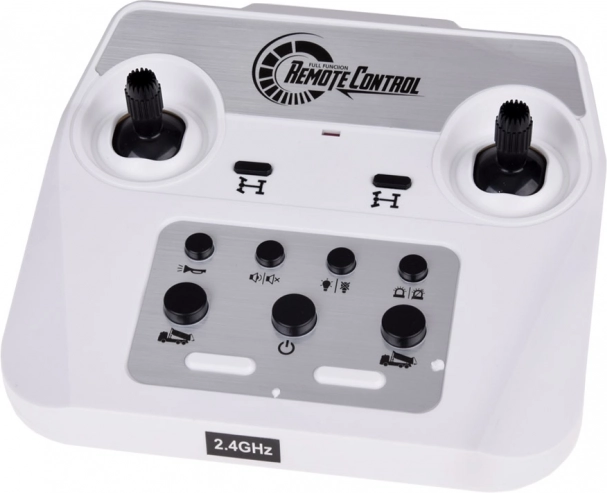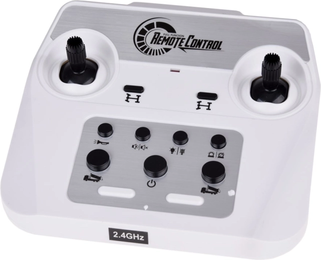 Marche avant/arrière fluide et direction, activation/désactivation des lumières et sons, réglage du pincement du train avant, interrupteur des gyrophares et de la benne.