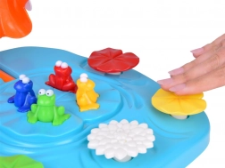 Les moments de suspense arrivent à chaque fois que le crocodile apparaît sur la carte. Celui qui appuie le premier sur le nénuphar sauve sa grenouille !