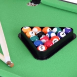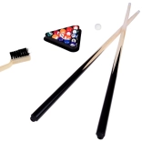 La boîte contient tout le nécessaire : 2 queues pour enfants, jeu complet de boules avec bille blanche, triangle pour l’alignement, brosse pour l’entretien du tapis et craie pour un meilleur contrôle des coups. Le set est idéal pour les débutants et les moments de détente en famille.