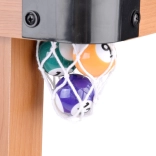 Des pieds en bois et un tapis vert garantissent la stabilité, une glisse fluide des boules et l’apparence d’une vraie table.
