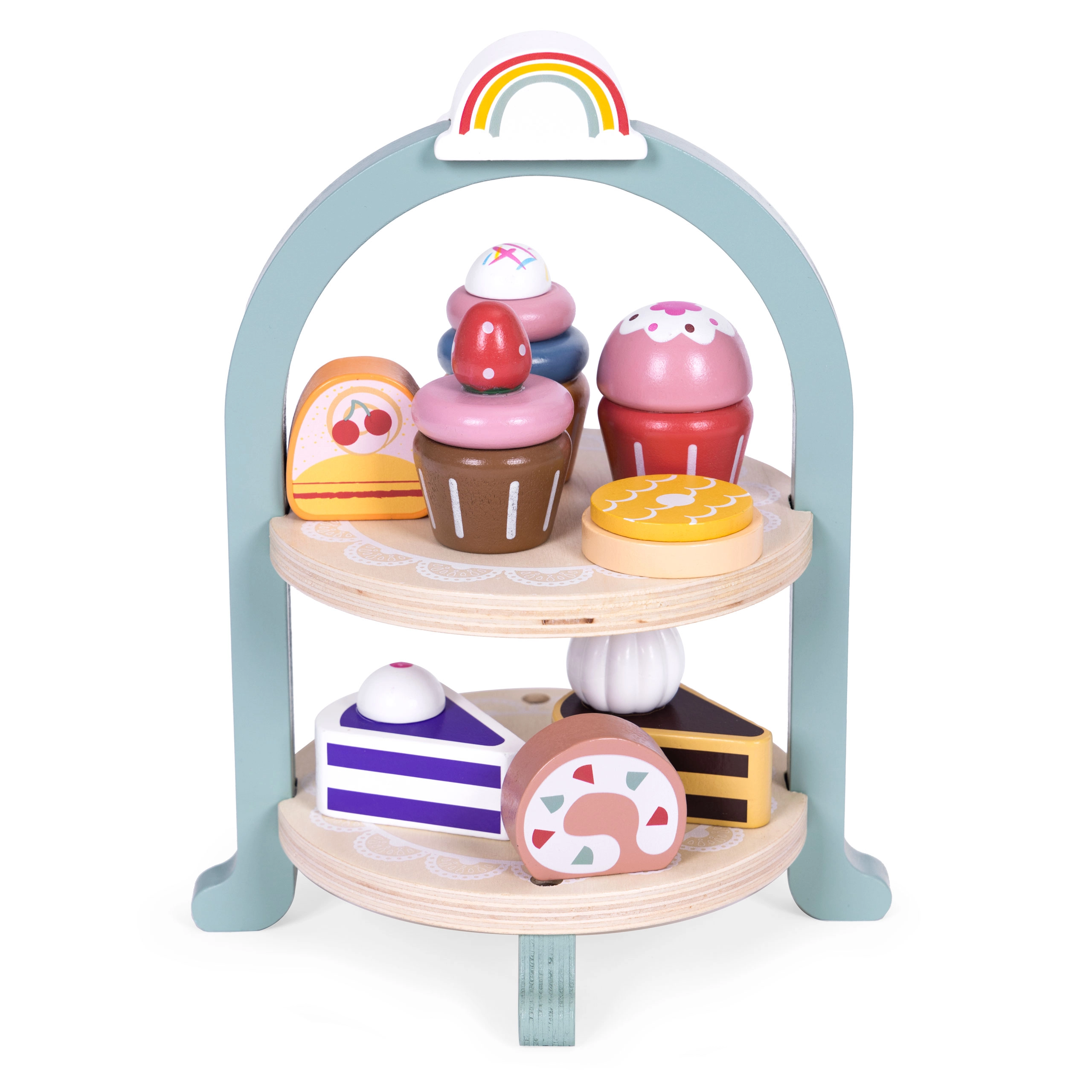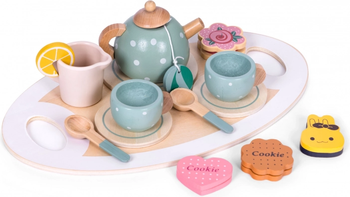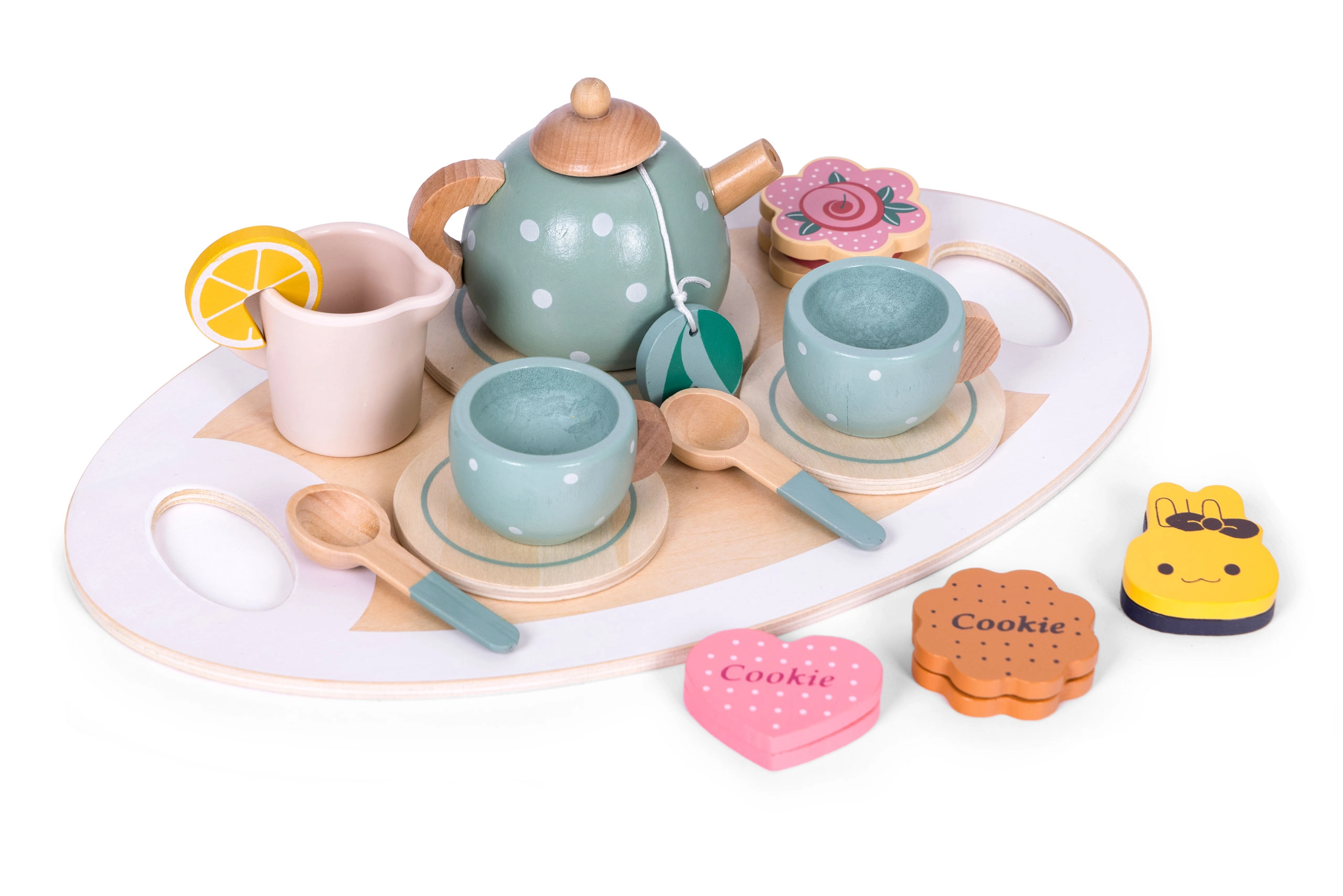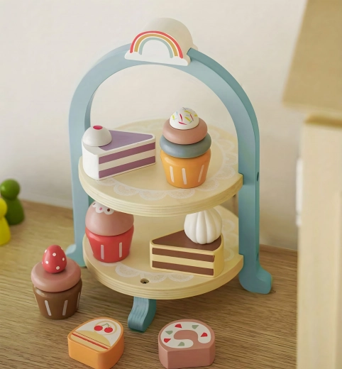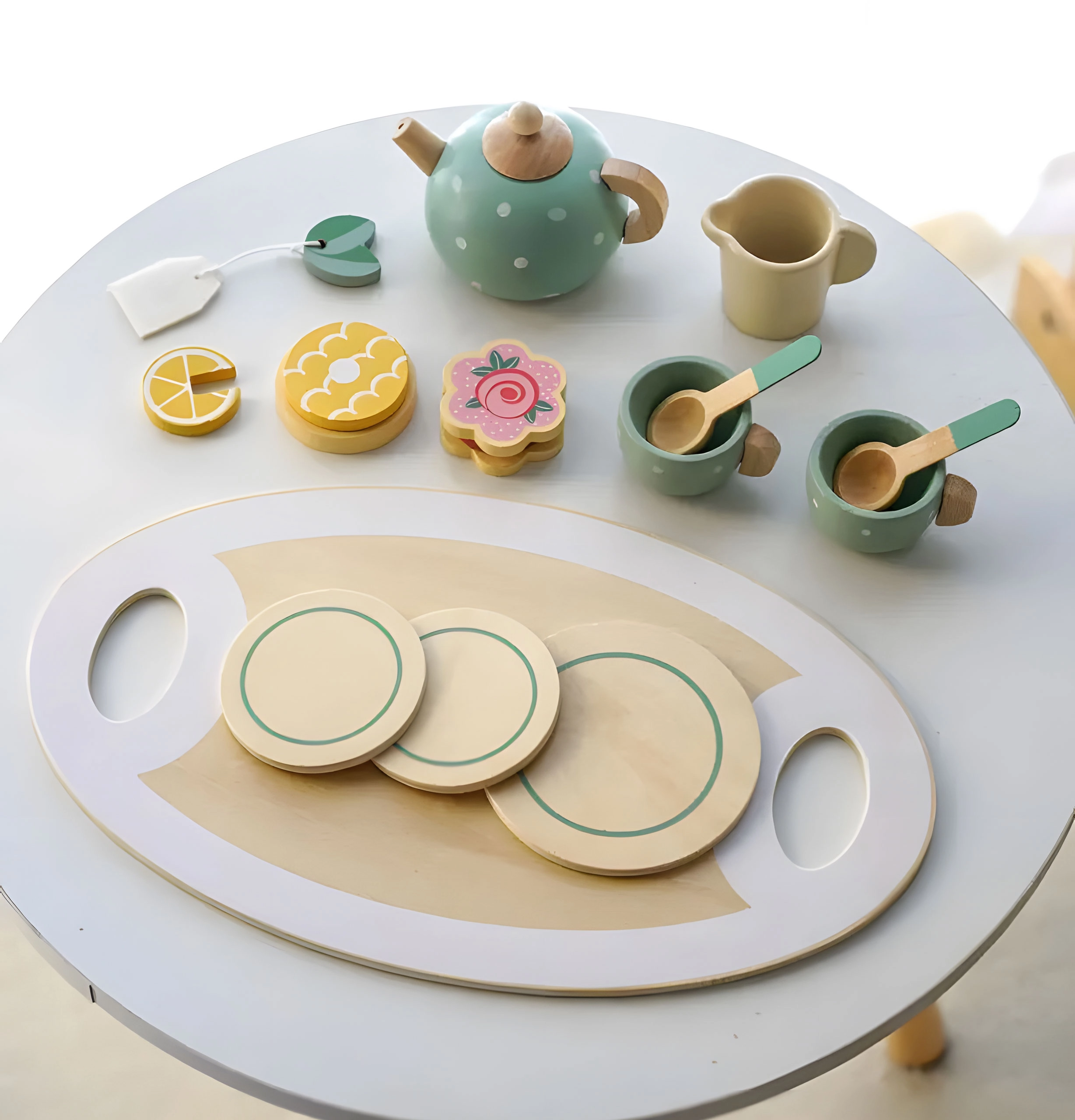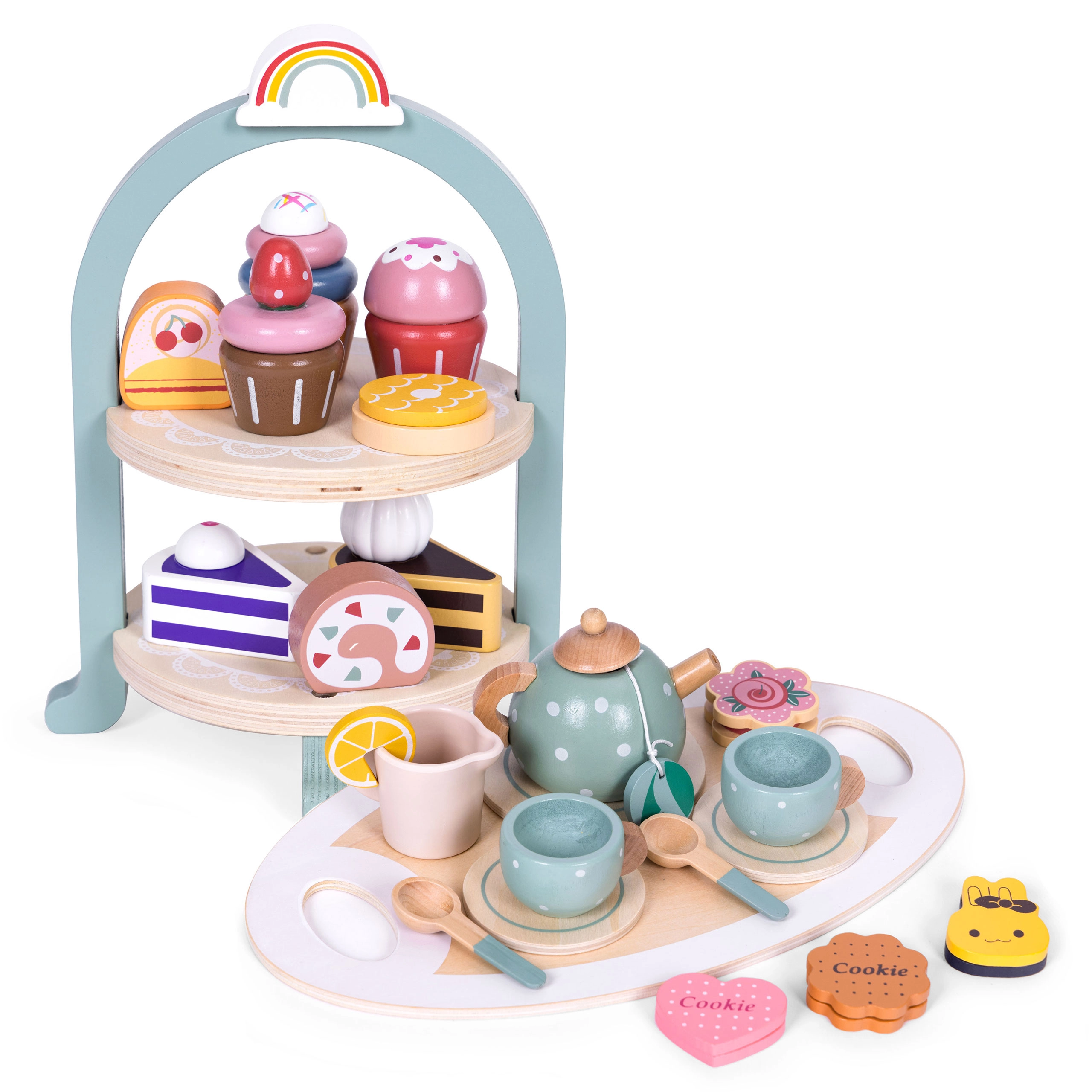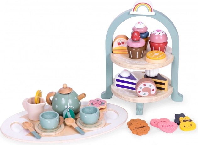 Set en bois pour enfants pour une fête du thé avec gâteaux