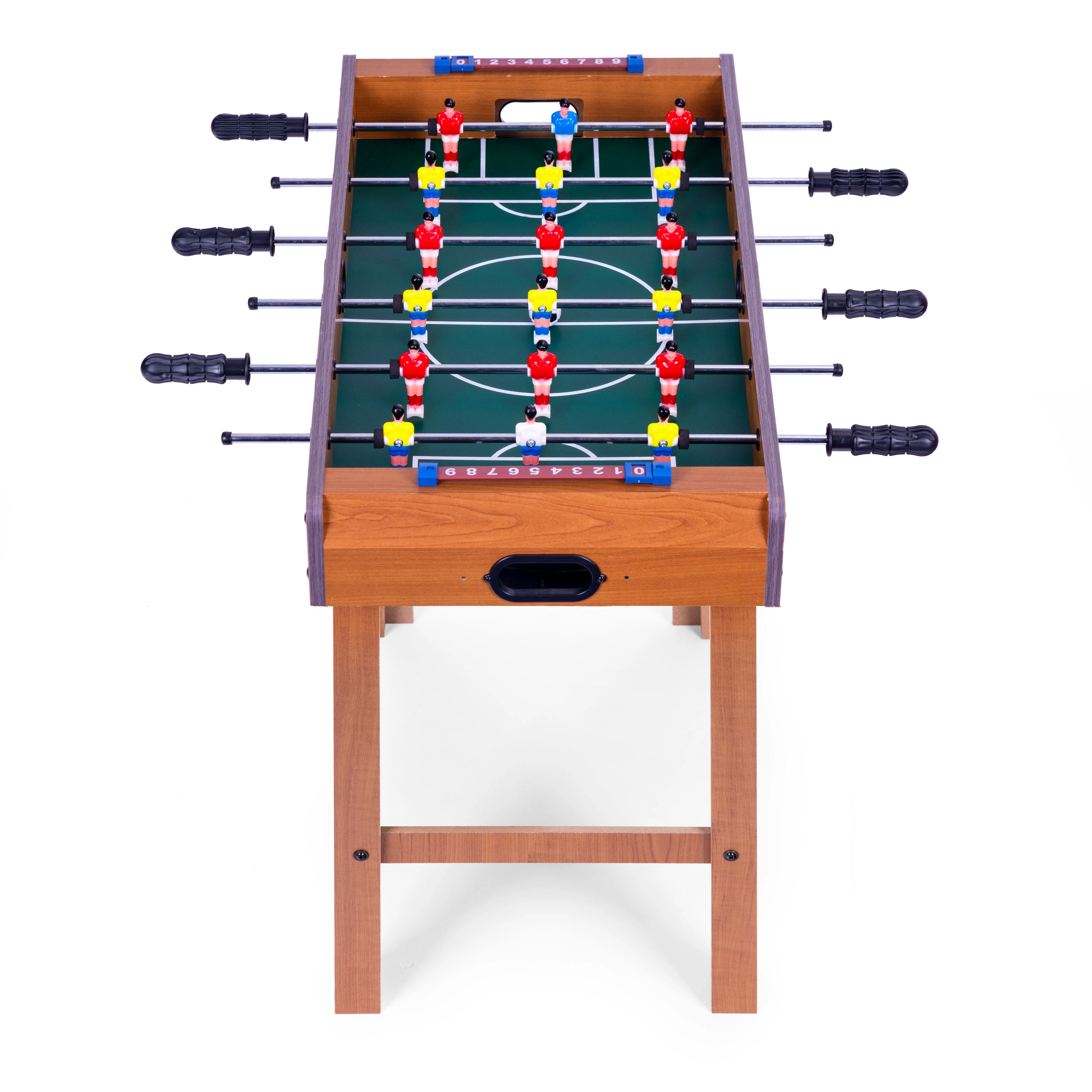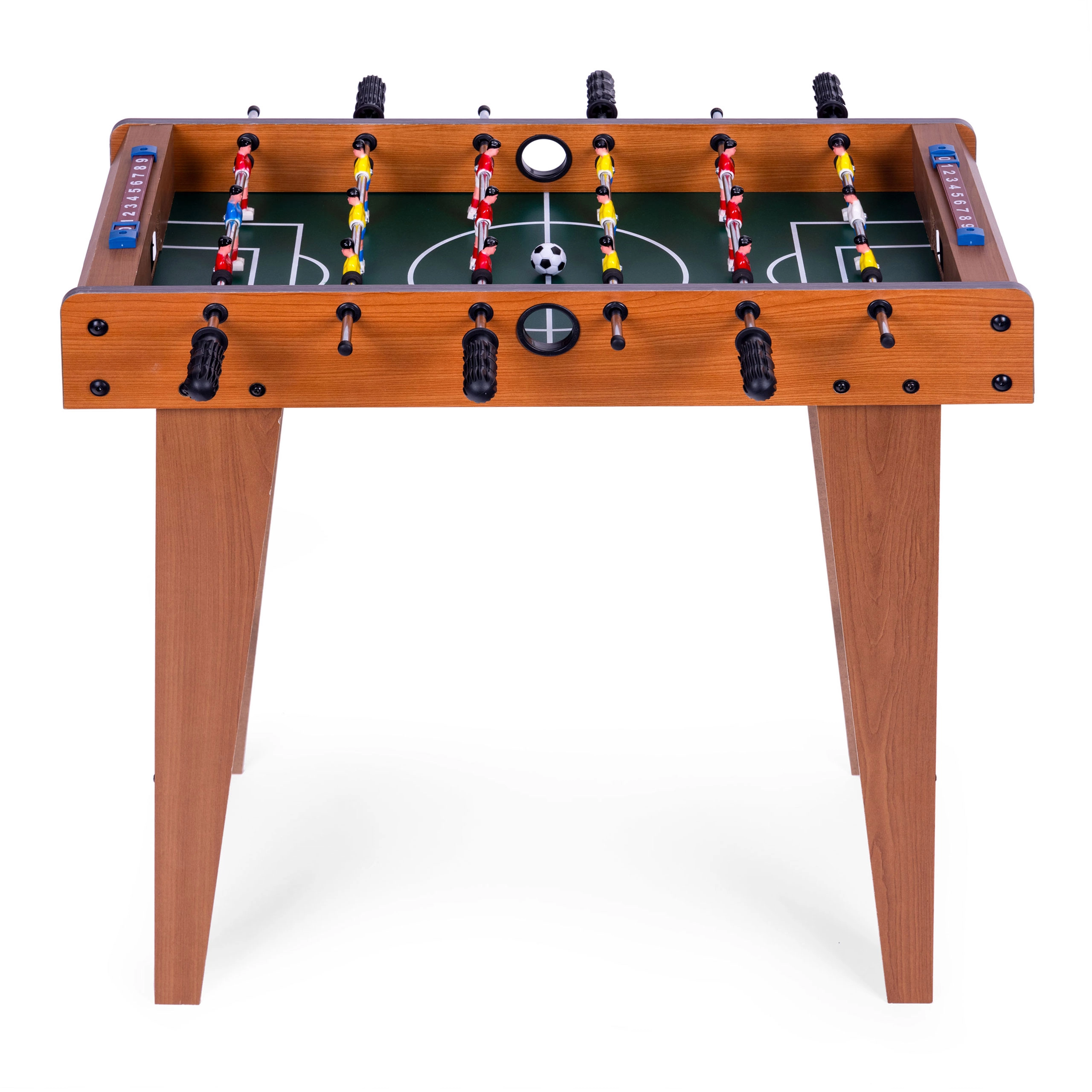 Le baby-foot est conçu avec le sens du détail – il comprend un compteur de buts simple et des poignées en caoutchouc qui offrent un meilleur contrôle des joueurs et garantissent une partie dynamique.