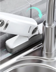 Le mini mop Ruhhy est équipé d'un système click qui garantit que les accessoires restent solidement fixés. Il est idéal pour un nettoyage précis même dans les endroits difficiles d'accès grâce à ses bras flexibles et à son mouvement latéral.