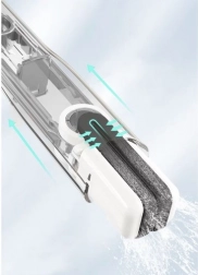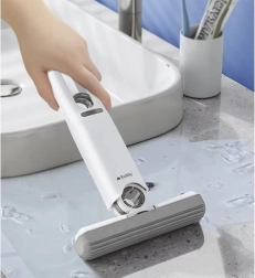 Découvrez le mini mop Ruhhy compact, idéal pour un nettoyage en profondeur des vitres sans traces, avec facilité grâce à sa poignée ergonomique et son mécanisme innovant pour presser l'eau avec un seul doigt.