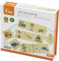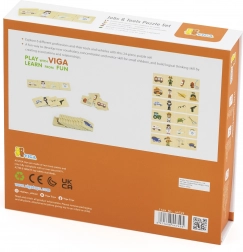 Découvrez les amusants puzzles en bois VIGA, qui initient les enfants dès 18 mois au monde du travail. Le set comprend 24 pièces où les enfants associent 6 métiers aux outils et véhicules correspondants. Le jeu développe la motricité fine, la pensée logique, l'attention et la coordination visuelle. Fabriqué en bois de hêtre et coloré avec des peintures non toxiques – sûr, durable et idéal comme cadeau.