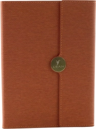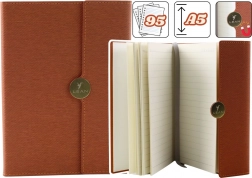 La couverture texturée avec rabat et élément métallique circulaire offre un aspect professionnel et une bonne résistance à l’usure.