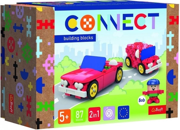 Jeu de construction Connect 2-en-1 cabriolet/utilitaire en plastique 87 pièces en boîte 19x13,5x9 cm
