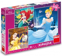 Le coffret comprend 3 puzzles séparés avec les princesses CENDRILLON, ARIEL et BELLE – chacun de 55 pièces pour un divertissement long et varié.
