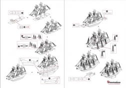 Le montage se fait sans colle – les pièces s’assemblent à l’aide de verrous à ergots, que vous pliez avec de petites pinces. Le modèle fini du navire GOLDEN HIND se distingue comme décoration élégante sur une étagère, un bureau ou dans une vitrine.