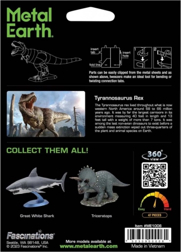 Découvrez le plaisir du travail de précision sur métal et transformez de fines plaques d’acier en un modèle impressionnant de Tyrannosaurus rex. Grâce au gravage laser délicat, les écailles, les dents et les muscles ressortent, pour une pièce décorative qui attire le regard dès le premier coup d’œil.