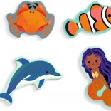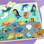 Découvrez le puzzle à encastrer en bois de la marque DJECO avec un charmant motif du monde marin et des sirènes. Il soutient le développement de la motricité fine, la coordination œil–main ainsi que la pensée logique. Chaque pièce possède un contour coloré pour un placement plus facile et, grâce aux cadres, les pièces tiennent mieux en place. Les éléments à encastrer peuvent également être utilisés comme figurines indépendantes pour jouer.