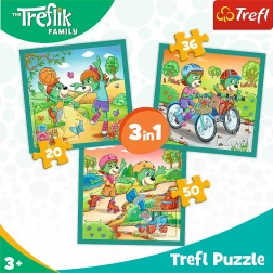 Ce set de puzzles progressifs sur le thème des Treflíci propose trois images de difficultés différentes, permettant aux enfants de passer en douceur d’un puzzle plus simple à un plus exigeant. Chaque puzzle a un format compact de 20 × 19,5 cm, idéal pour assembler confortablement sur une table ou en voyage.