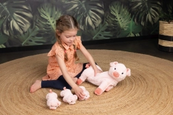 L'ensemble de jouets en peluche Cochonnets avec Maman offre un matériau très doux et agréable, idéal pour les câlins et le jeu. La maman a une fermeture éclair pratique sur le ventre, permettant de révéler les petits cochonnets cachés à l'intérieur, ce qui est excellent pour le développement émotionnel et des capacités de soin chez les enfants. Cette fonctionnalité est également pratique pour les voyages, car les petits peuvent être rangés en toute sécurité.
