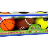 Un set polyvalent de trois balles souples pour petits sportifs apporte beaucoup de plaisir à la maison comme à l’extérieur. Grâce à leur conception légère et souple, elles sont sans danger pour les enfants et favorisent le mouvement, la coordination et le plaisir de jouer. L’emballage contient des balles au look de football, de basket-ball et de base-ball.