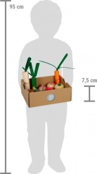 Grand set d’aliments avec couteau en bois, idéal pour toute cuisine d’enfant. Il contient des fruits et légumes réalistes, reliés par du velcro, qui peuvent être facilement « découpés ». Le set favorise le jeu créatif et apprend aux enfants la responsabilité envers l’environnement.